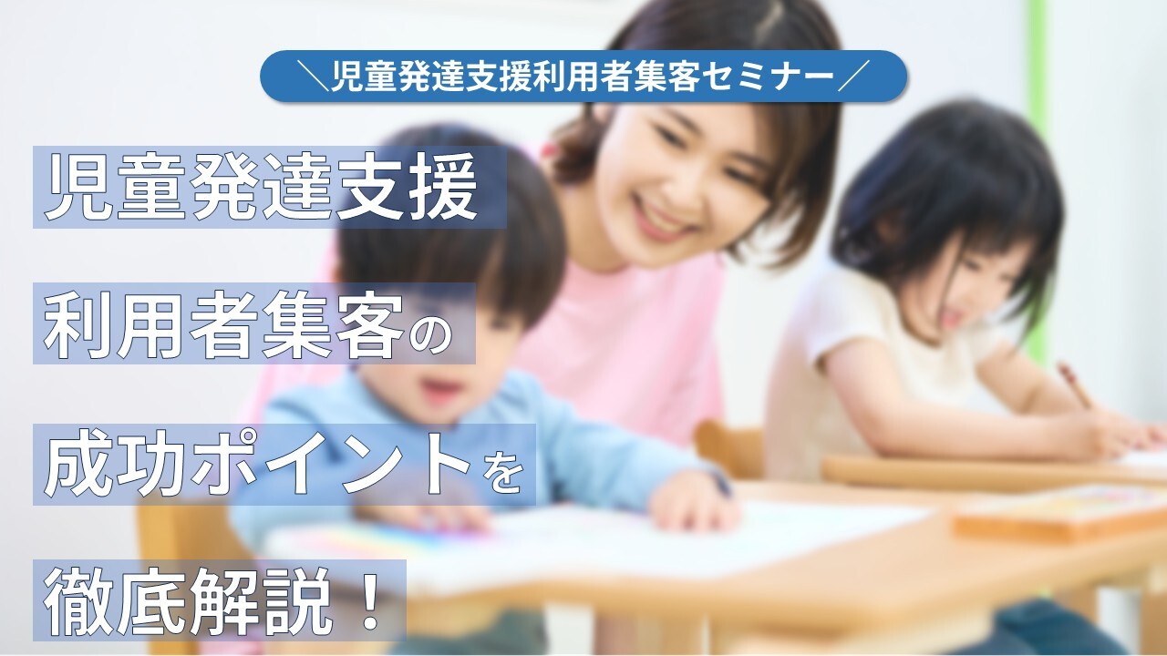 本セミナーは、全国の児童発達支援・放課後等デイサービスが実践して成果を出した「成功事例20連発」をベースに、明日からできる利用者集客施策をお伝えする内容です。