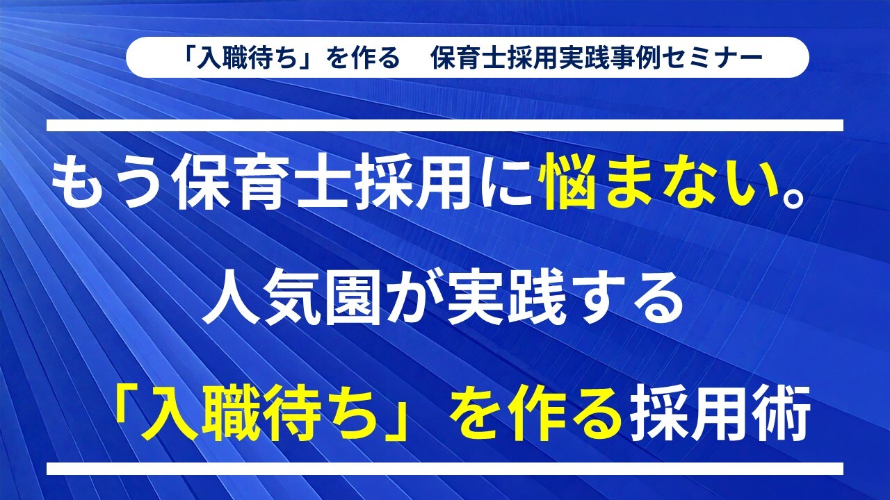 本セミナーでは、具体的な成功事例を交えながら、明日から実践できる「自社採用ルート」の整備や、職員が長く働きたくなる園づくりのポイントを徹底解説します。